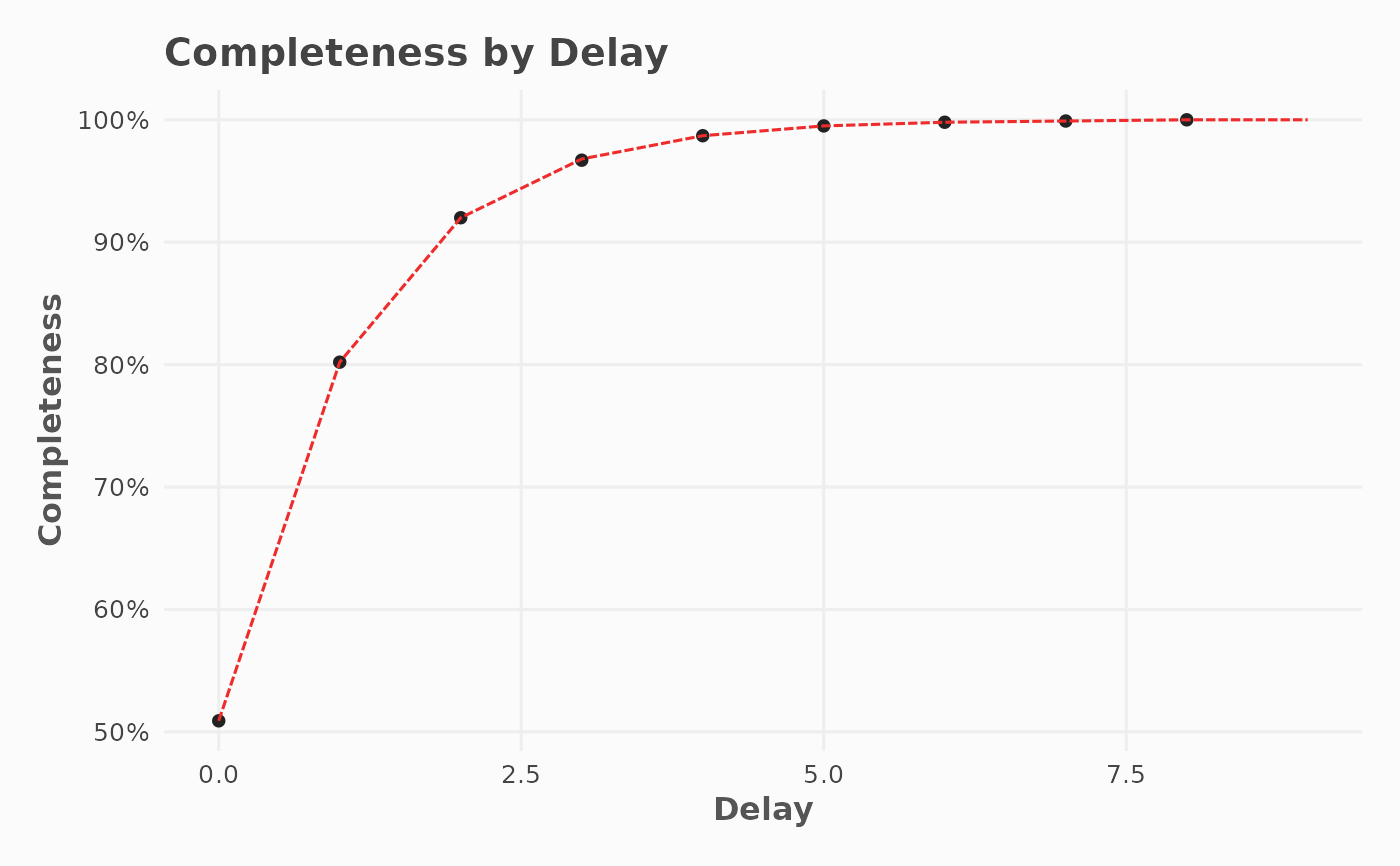 Creates a scatter plot of reporting completeness against reporting delay.
